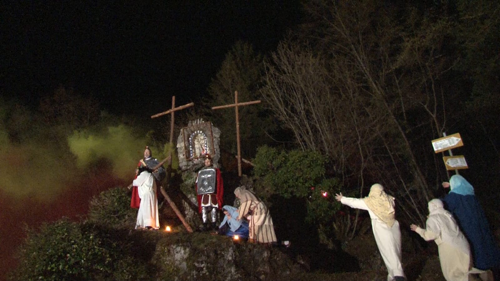 A Bondone, le vie del borgo si sono trasformate in un suggestivo palcoscenico a cielo aperto, dove decine di figuranti – in particolare i giovani dell’Unità Pastorale Madonna dell’Aiuto – hanno dato vita alle tappe della Passione di Cristo, dalla condanna alla crocifissione.